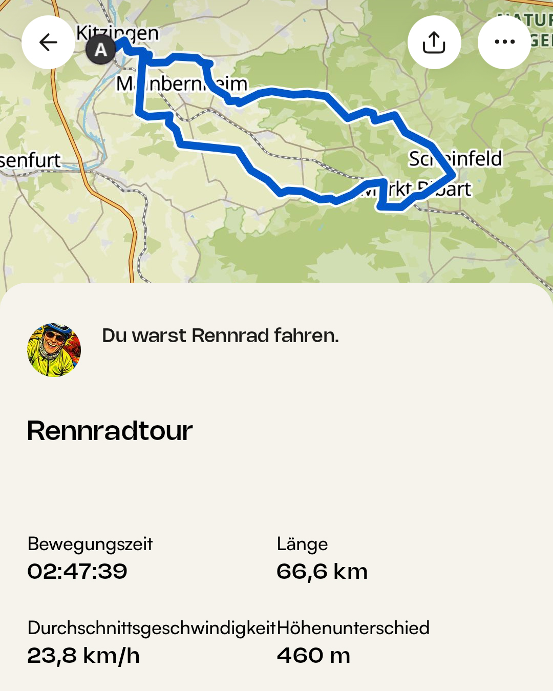 Herrliche Tour a weng Mühlen Radweg, a weng Berge und a weng Mittelfränkische Bocksbeutelstraße. In Sugenheim einen Gleichgesinnten aus Sachsen getroffen. Wir leben wirklich in einer schönen Gegend. 🙂 Die auf Komoot. Noch so ein Spruch: Wer sich über das freut, was er hat, hat keine Zeit mehr, über das zu klagen, was er nicht hat. Im Ohr heute u.a. DAF – Der Raeuber und der Prinz. Später dann noch mit Lundi Essigkauf und Spaziergang in Sommerhausen.