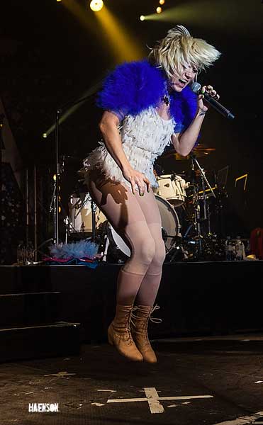 Mias dramtische, poetische Texte mit Hang zum Kämpferischen kamen bei den 400 Besuchern in der Würzburger Posthalle gut an. Die Mischung aus Elektronik, Pop und Punk von Frontfrau Mieze Katz, Gitarrist Andy Penn, Bassist Robert „Bob“ Schütze und Schlagzeuger Gunnar Spies macht Laune beim anhören. Die ganz in weiß gekleidete Mieze zeigte zudem eine bemerkenswert aufwendige Bühnenshow die nicht an allen Orten der geplanten Tacheles Tour stattfinden konnte so das einige Termine verlegt oder abgesagt werden mussten