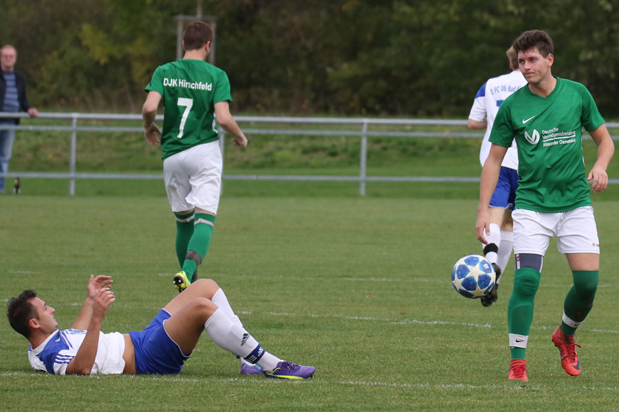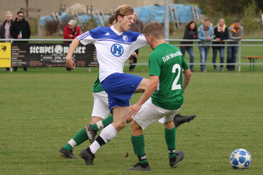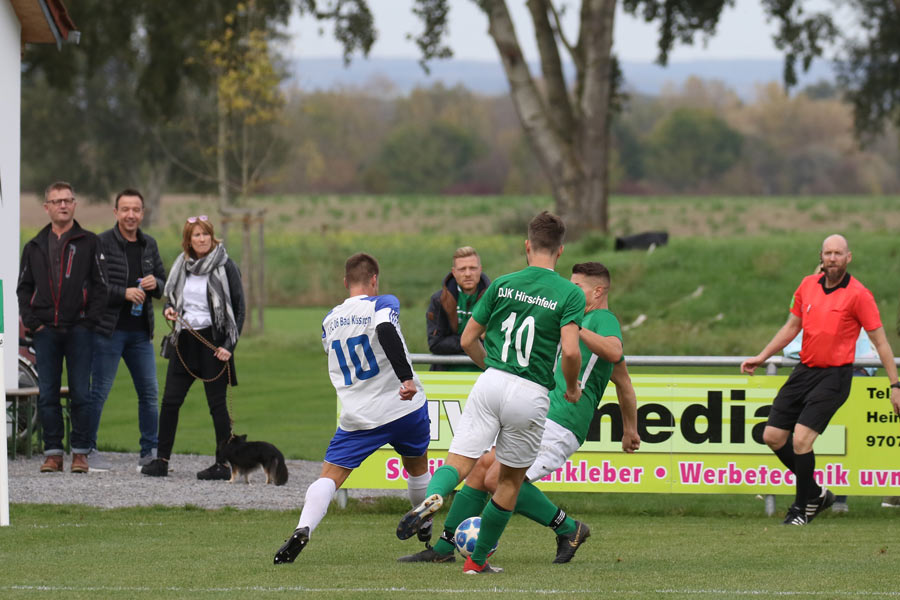 Die DJK Hirschfeld konnte, ersatzgeschwächt, der Heilbädertruppe aus Bad Kissingen nicht viel entgegensetzen und verlor das Spiel mit 0:3. Auf dem Papier ging der 1. FC Bad Kissingen schon als Favorit ins Spiel. Kaum hatte die Partie, bei traumhaften Herbstwetter, begonnen brachte Tizian Fella die Kissinger vor 150 Zuschauern mit 1:0 in Führung. Bis zur Pause fiel kein weiteres Tor. Es dauerte 20 Minuten bis Nils Halbig, der in dieser Saison aus der Junioren Bezirksoberligamannschaft des FT Schweinfurt nach Bad Kissingen wechselte, das zweite Tor erzielen konnte. Der eingewechselte Ruslan Zhyvka stellte dann in der 82. Minute den Endstand her. Durch diese Niederlage fielen die Hirschfelder in der Tabelle auf Platz fünf zurück. Offensiv kann dem FC Bad Kissingen in der BZL Ufr-Ost kaum jemand das Wasser reichen, was die 35 geschossenen Treffer nachhaltig dokumentieren. Mit dem Erfolg verbesserte der Tabellenprimus die Ausgangslage im Rennen um den Gang in die Landesliga erheblich. Nächster Prüfstein für die Hirschfelder sind das Auswärtsmatch bei den unberechenbaren Altbessinger. (Sonntag, 15:00 Uhr). Tags zuvor prüft der TSV/DJK Wiesentheid die Truppe aus der Bäderstadt.