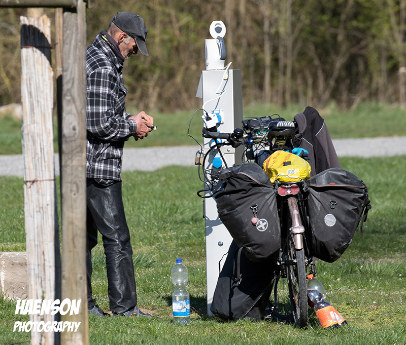 Aus 500m Entfernung huschte auch ein Fasan vor die Kamera. Ein Star im Baum trällerte den Klang der Baumaschinen nach und ein Reiseradler kochte sich an einer einsamen Stromsäule auf dem verlassenen Wohnmobilstellplatz seinen Morgenkaffee. Es war noch richtig und die Eiswiese machte ihren Namen alle Ehre. Unten eine kleine Bilderserie.