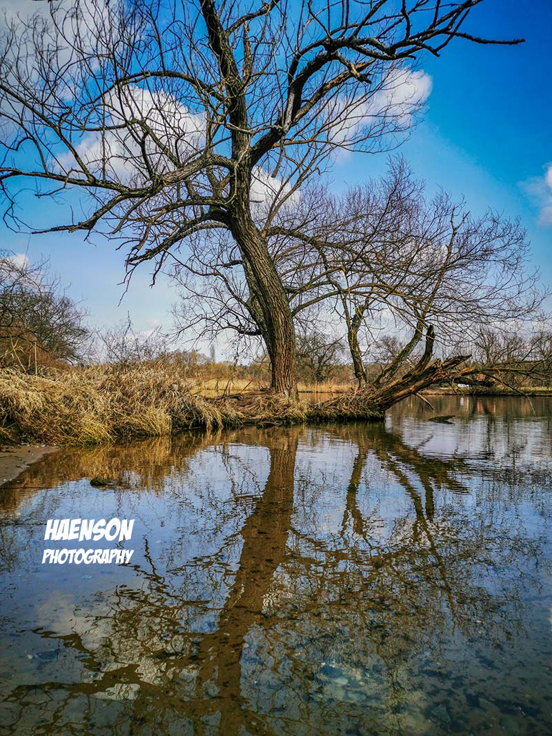 Aus- und Einblicke beim täglichen Morningwalk am Mee. Fairplay auf dem Fluss und nettes Holzschildchen am Ufer.