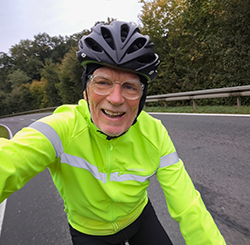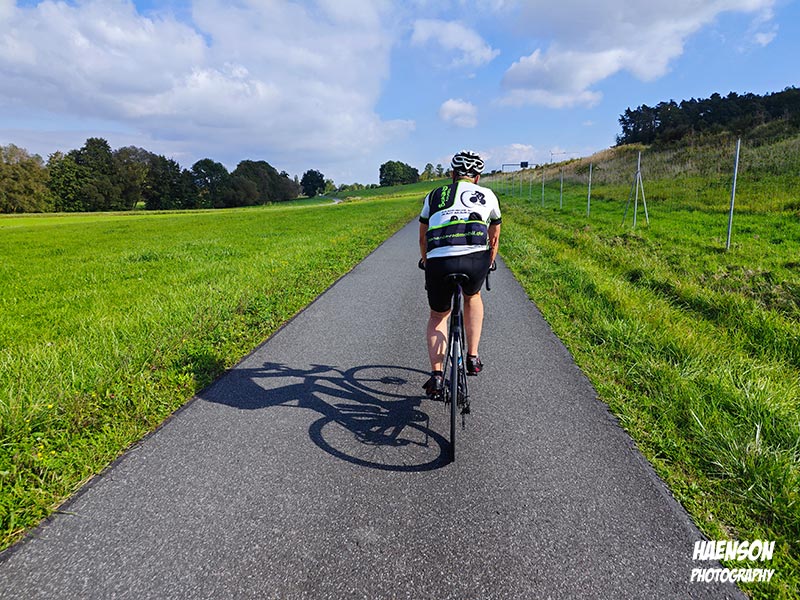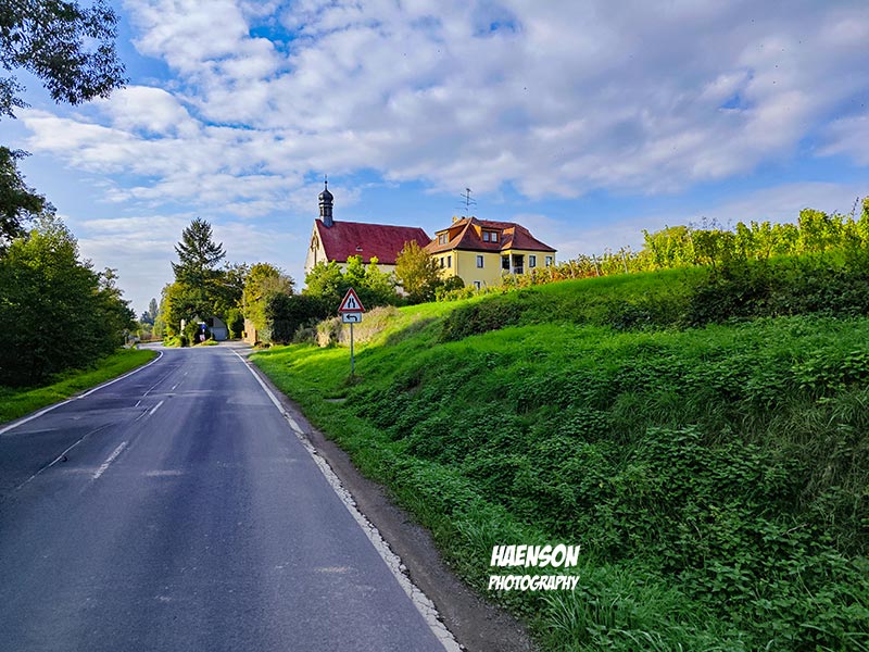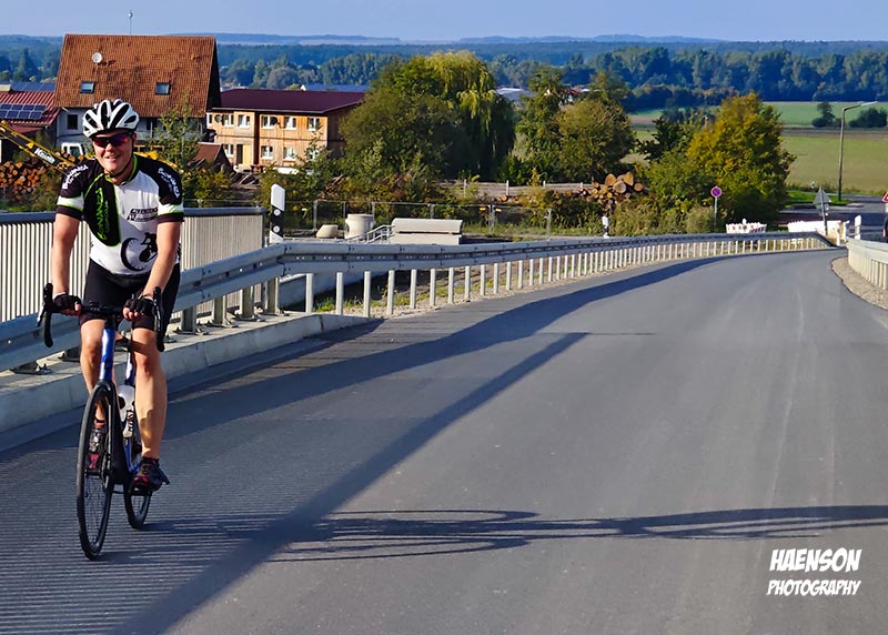 Am Treffpunkt Mainkai hatte das Flusskreuzfahrtschiff River Duchess Basel festgemacht. Als wir losfuhren hat der Wind schon mächtig geblasen. Die stürmische Fahrt ging bis Obervolkach. Immer wenn ich durch den Ort fahre muss ich an den früheren Bahnrad-Bundestrainer Siegward Lychatz denken. Ich war einige Male bei ihm zu Besuch in Obervolkach und wir fachsimpelten über den Radsport. Oft hat er mir Ansichtskarten von den Austragungsorten von Weltcups oder irgendwelchen Trainingslagern geschickt. Zwei habe ich noch gefunden. Auf der einen hat auch Jens Lehmann zweifacher Olympiasieger, sechsfacher Weltmeister und seit 2017 ist Mitglied des Deutschen Bundestages unterschrieben. Siegward hatte sie alle unter seine Fittiche, selbst Jan Ullrich und Eric Zabel waren seine Schützlinge. im Ohr heute u.a. alessi rose – oh my