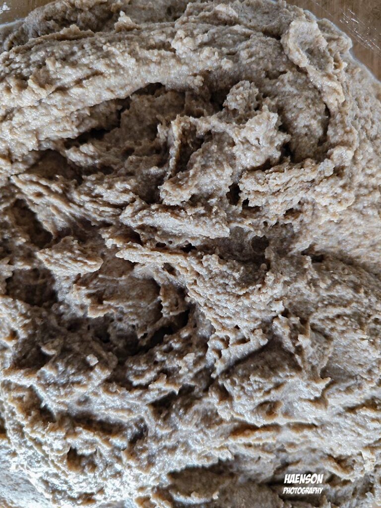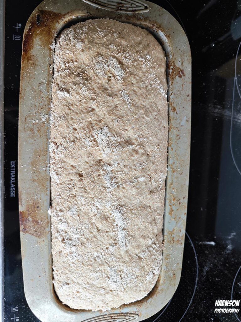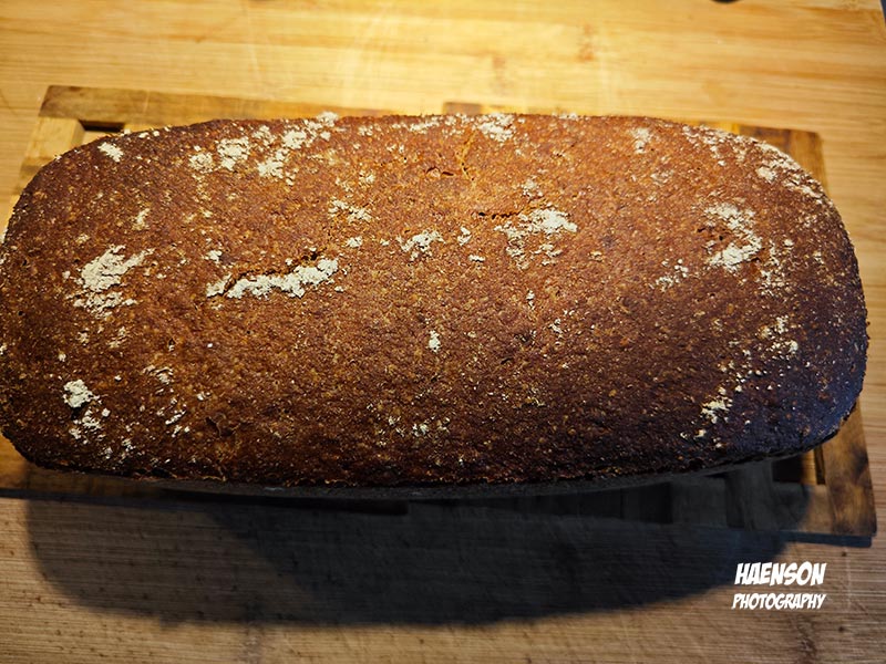Roggenvollkornsauerteig und Dinkelvollkornvorteig mit Salz und Gewürzen zu einem Teig kneten. Dann hat es Zeit, am besten über Nacht. Brot formen und wieder Zeit lassen. Dann eine Stunde backen. Mit 250 Grad anbacken, nach 10 Minuten zurückschalten auf 190 Grad, nach 30 Minuten das Brot drehen und 10 Minuten vor Ende der Backzeit das Brot drehen, das der Boden auch Kruste bekommt.