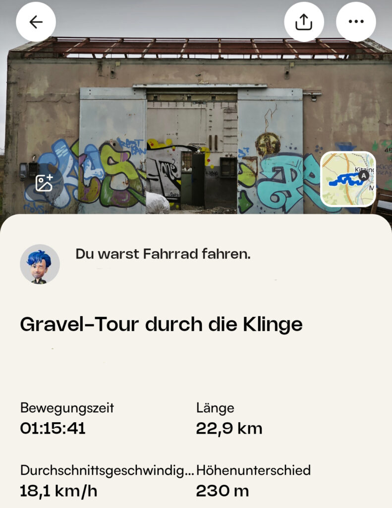 Ereignisreicher Tag heute. Walk and Talk über den Roten Teppich. Die Kleingartenanlage wird gerade platt gemacht wie auch das Lost Place des Nato Gates in der Klinge. Da bin ich auf meiner Tour mit dem Gravelbike vorbei gekommen. Komischerweise heute meine Brille zum Biken vergessen. Ich werd alt. 🙂 Chris Rea ist heute im Alter von 74 Jahren gestorben darum heute sein Driving Home For Christmas