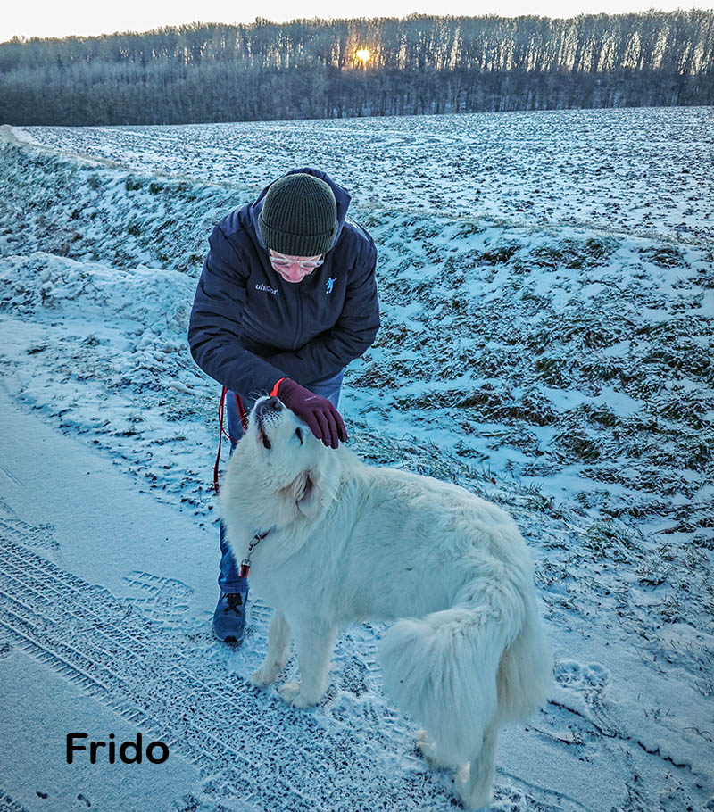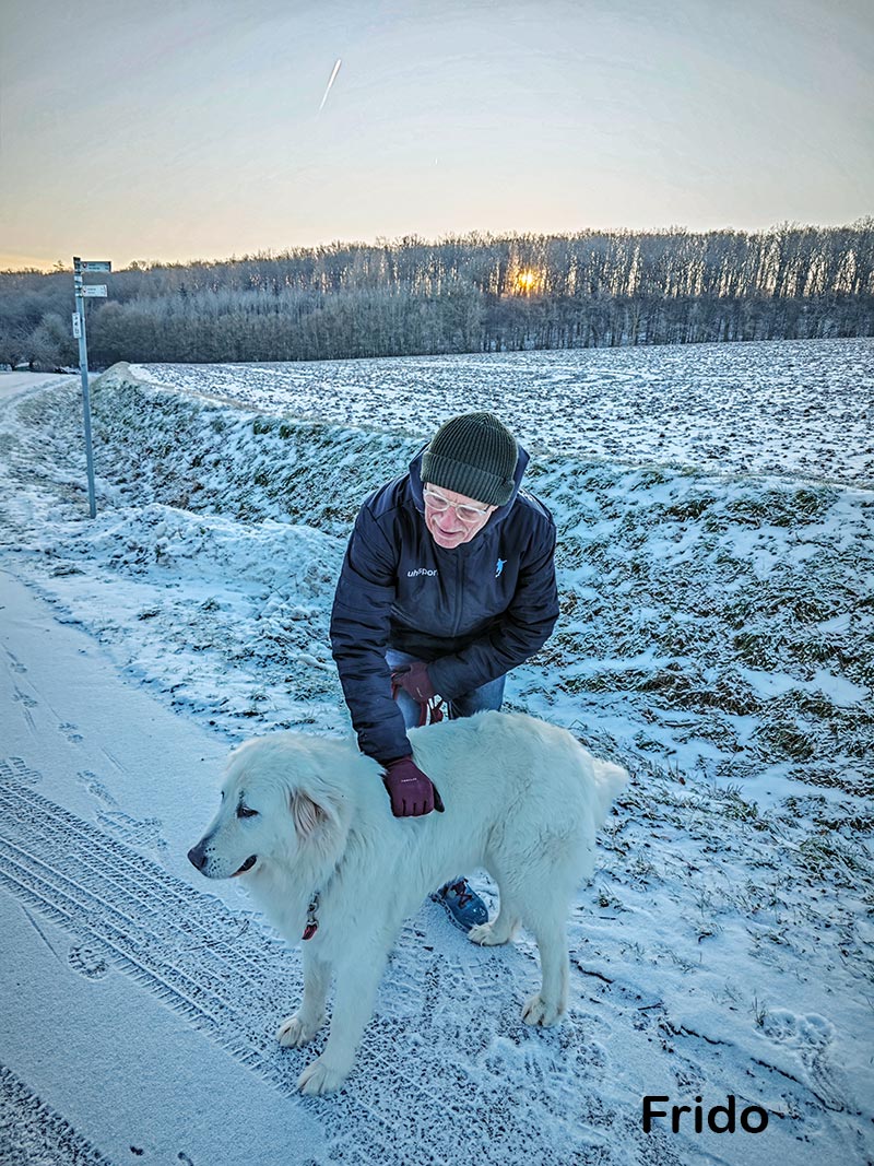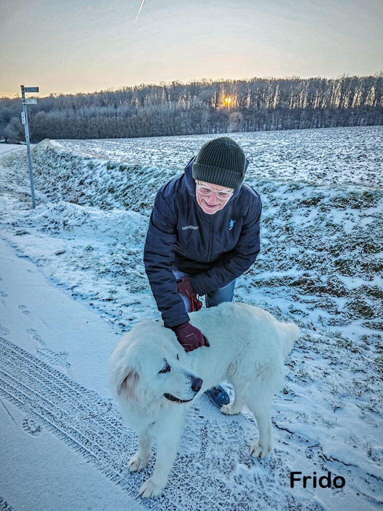 Unterwegs Frido mit seiner Luna getroffen. Ein wunderschöner Maremmen-Abruzzen-Schäferhund. Wenn der Winter weiter so aktiv bleibt wird der Frost der Straße nach Kaltensondheim den Rest geben. Im Ohr heute u.a. Pink Floyd Wish you were here | Full album